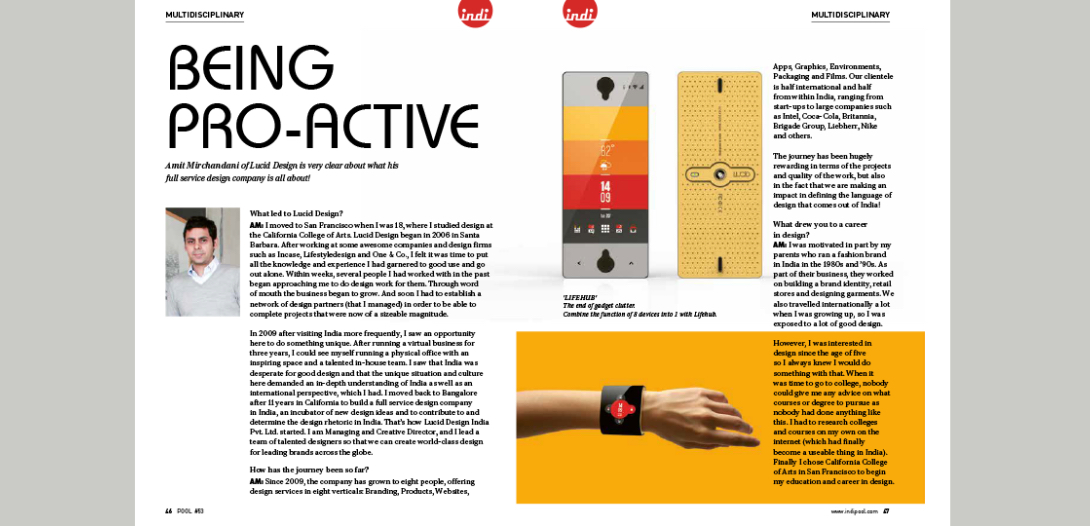 If you’d like to work at Lucid, email your portfolio as a weblink or in PDF format to jobs@lucid.co.in Please ensure that the total email size is 5 MB or less. We look for creativity, well considered design stories and a clear & succinct presentation of your ideas. We are unable to respond to all applications individually, however if we would like to interview you, we will contact you.
