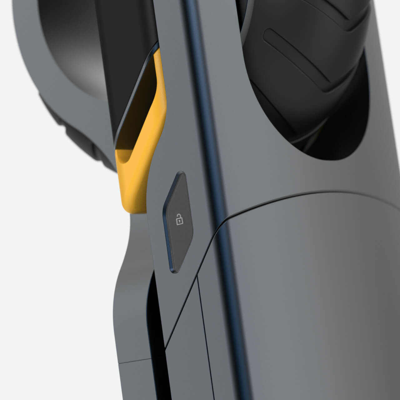 When on the train or bus, the folded Switch can be attached to your backpack letting you keep your hands free. A fingerprint enabled unlock button - located conveniently below the handlebar - unfolds Switch in one clean motion. And just like that you are on the move.