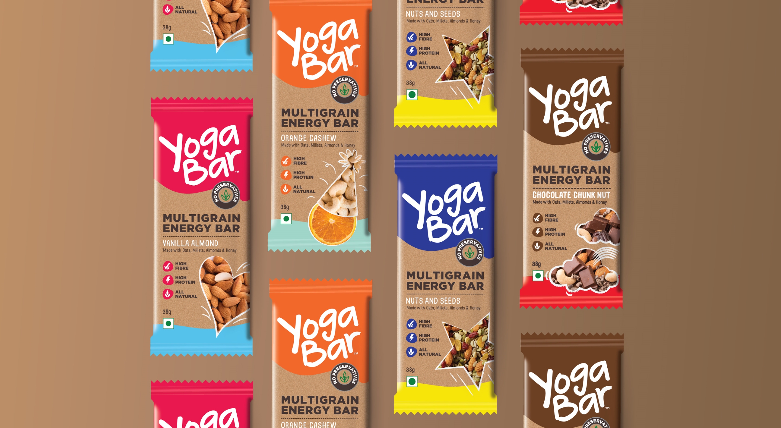 Yogabar approached us several years ago with a delicious snack bar in a generic foil pouch. They planned to go mainstream with a product they knew was good, but they needed the world to see it.